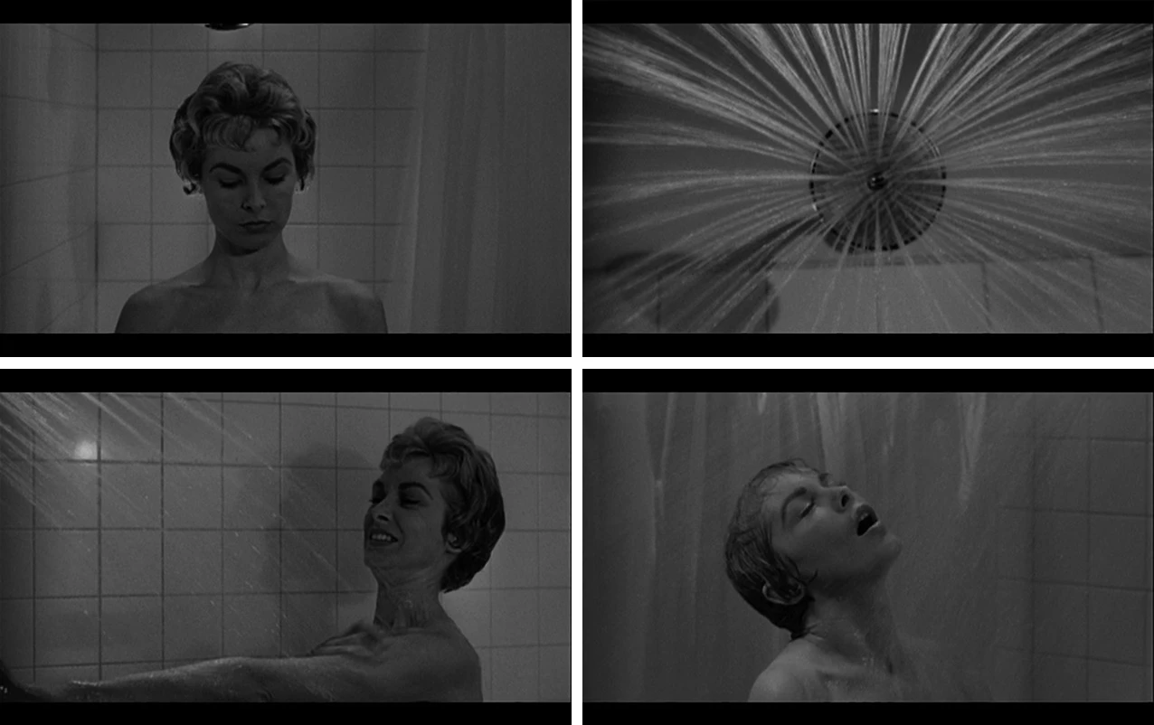 Hitchcock felt uncertain about Bass’s bold conception, fearing audiences might not accept such a stylized and staccato-like, symbolic, and abstracted sequence. Bass recalled, “Having designed and storyboarded the shower sequence, I showed it to Hitch. He was uneasy about it. It was very un-Hitchcockian in character. He never used that kind of quick cutting; he loved the long shot. Take the opening shot in Psycho, where the camera moves over Phoenix, over the buildings, closes in on a building, into a window and into a room where Janet Leigh and John Gavin are making love. That sort of camera move was his signature. My proposal was from a very different point of view.”