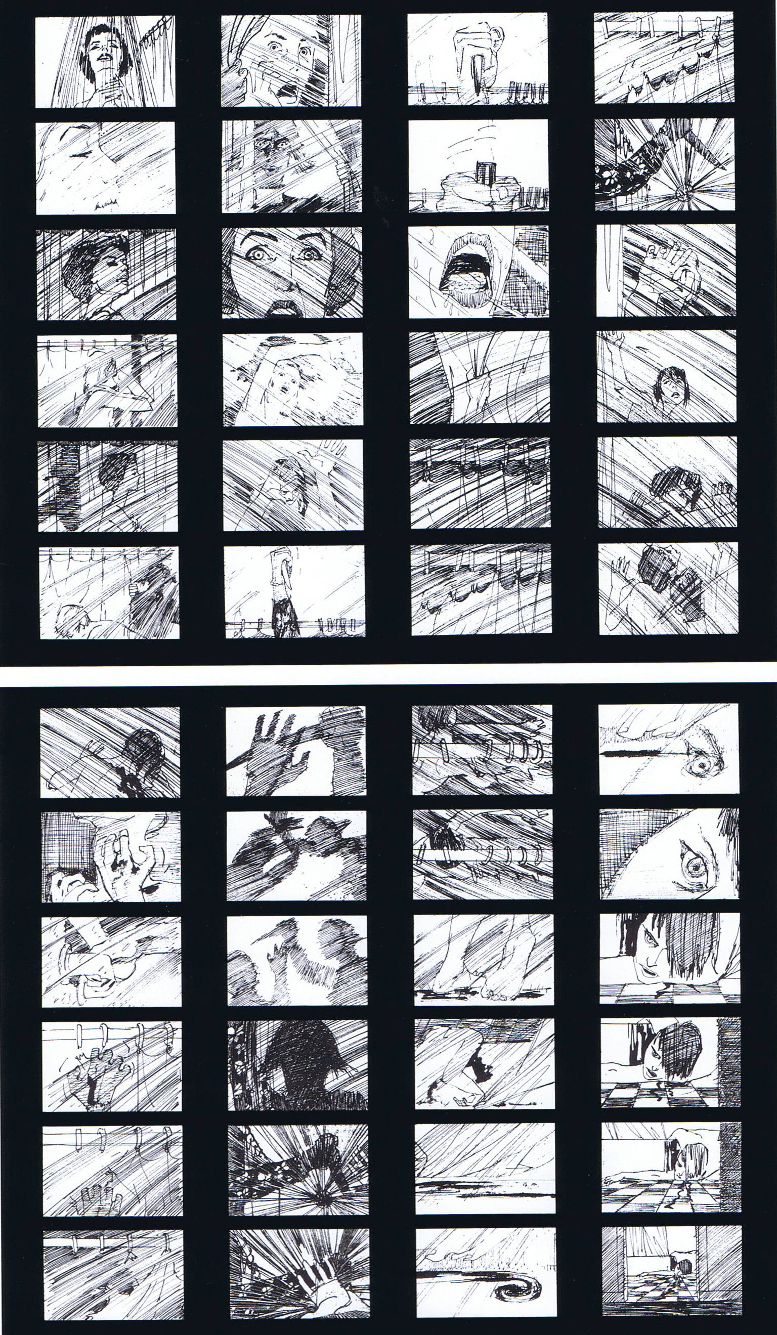 Frames from the shower sequence storyboard