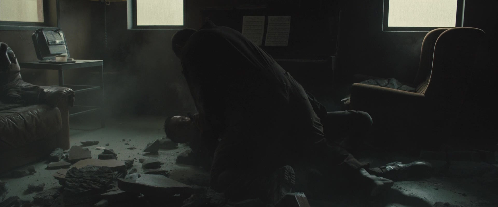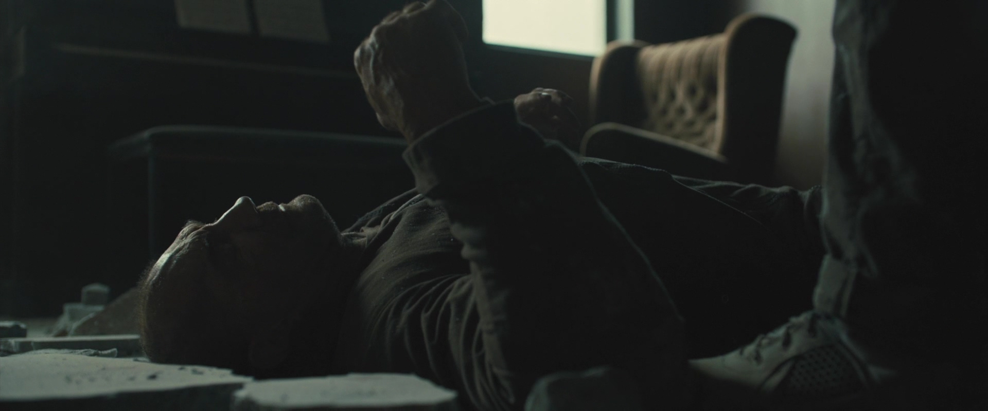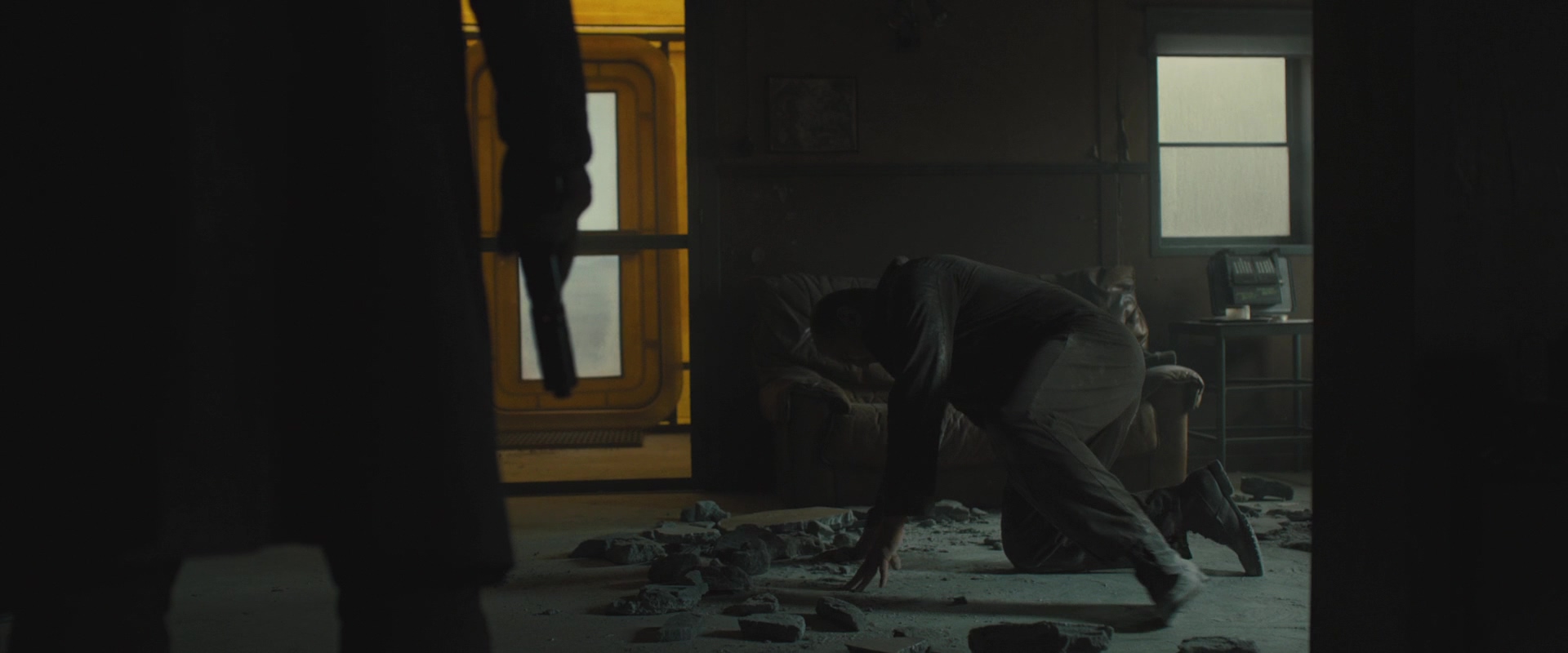 He falls (OS) and out of frame / Deckard stands over fallen man