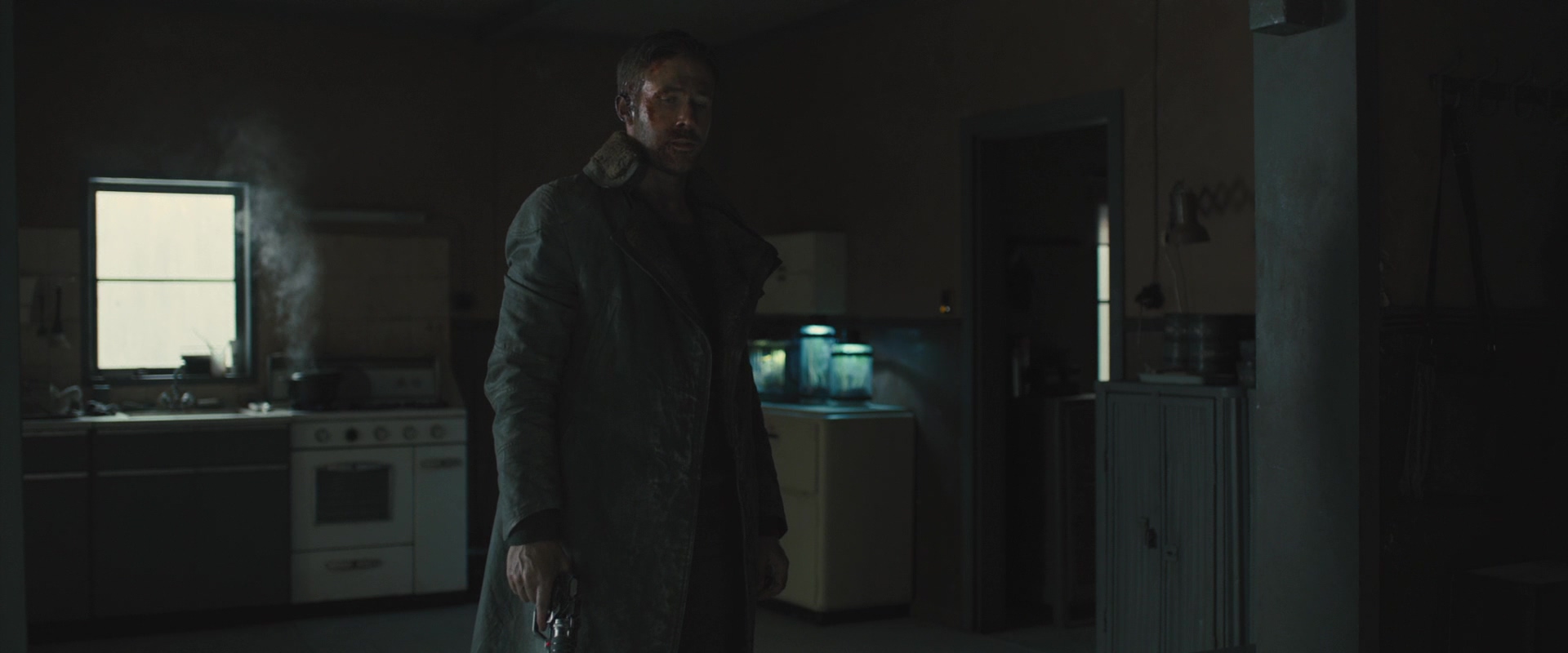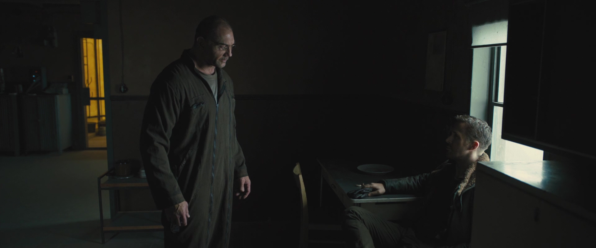 Man takes off goggles.. / Man moves to kitchen-Deckard crosses Frame(Dialogue)
