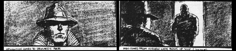 This version of the opening of Blade Runner was never shot. The beautifully concieved continuity is by Sherman Labby. This is the storyboard he created. All credit belongs to him for the artwork. Viewing is a must for all true BR Fans! There are 27 frames in all and they may take a moment to load.