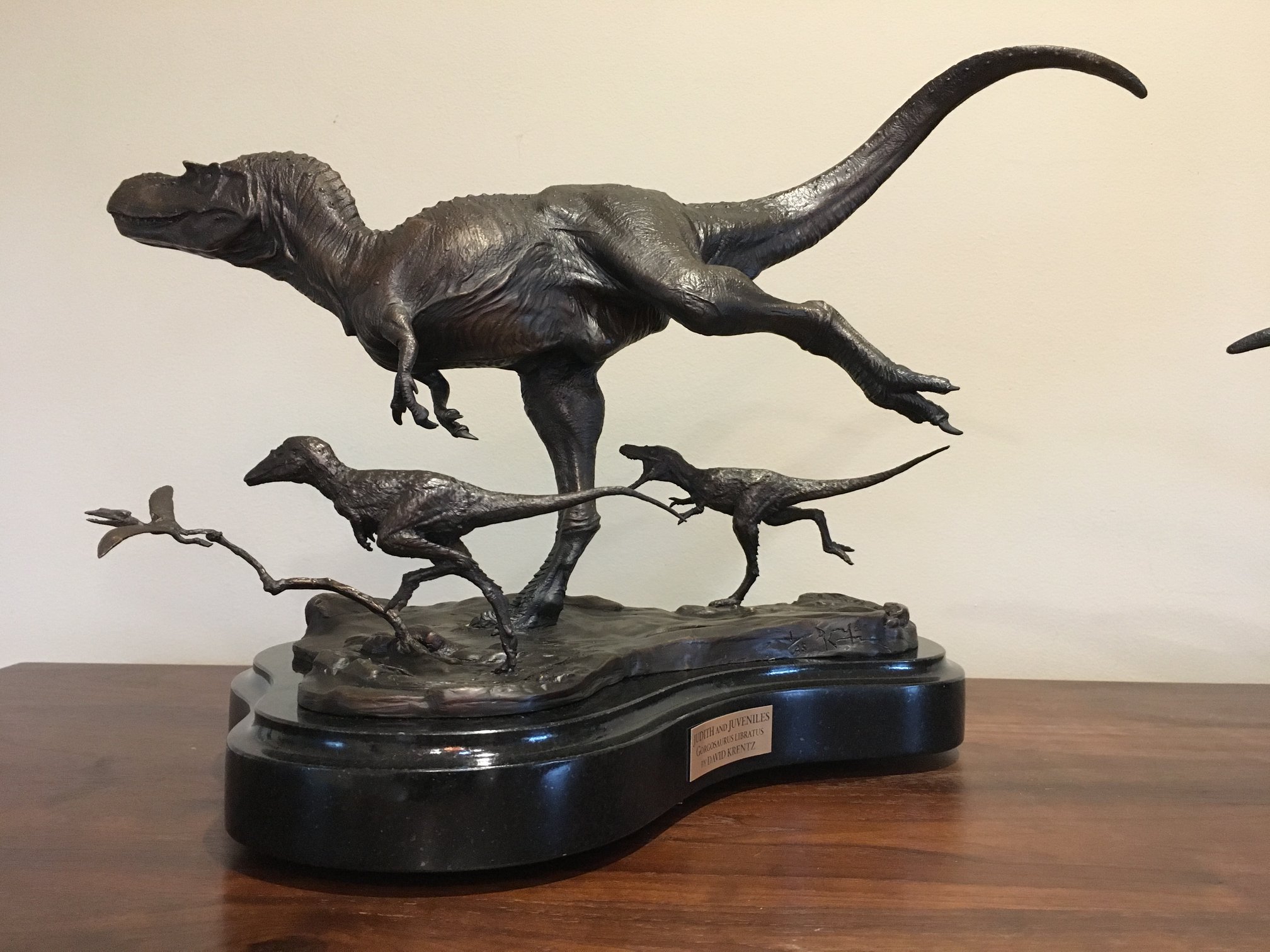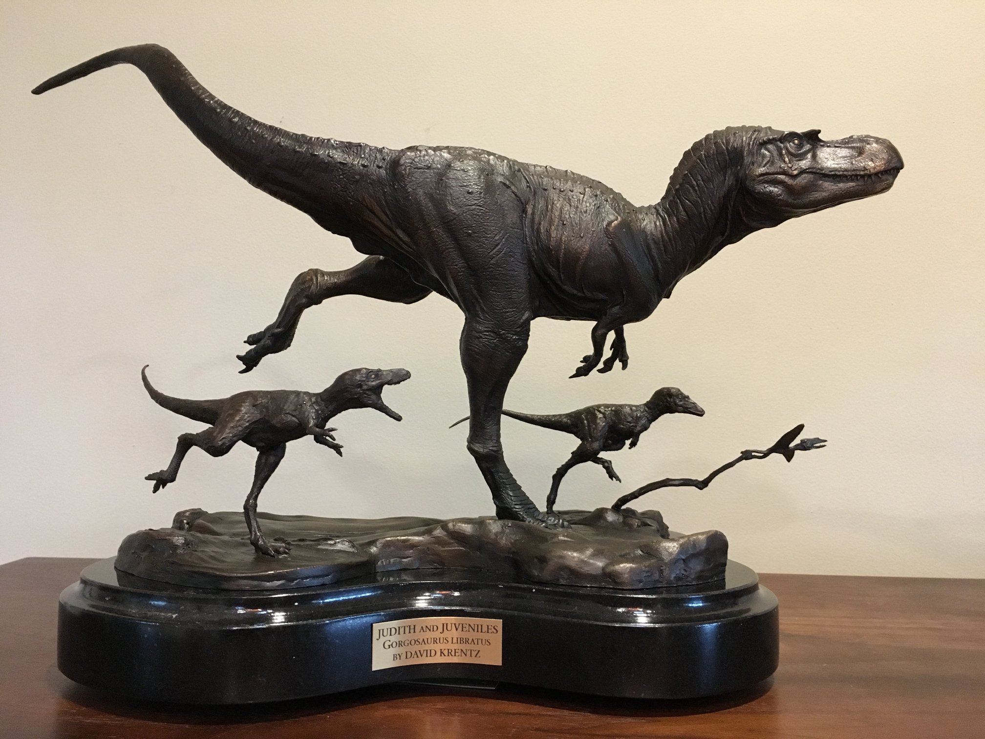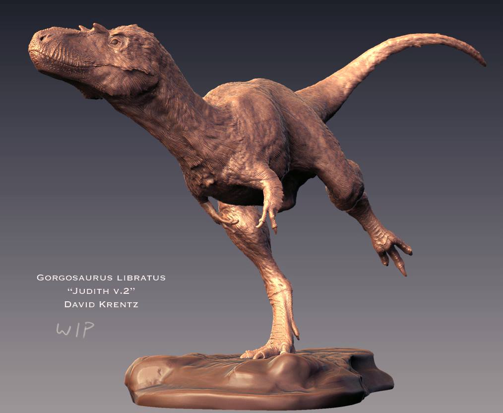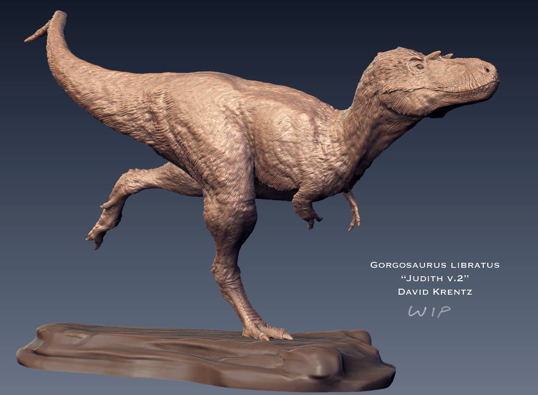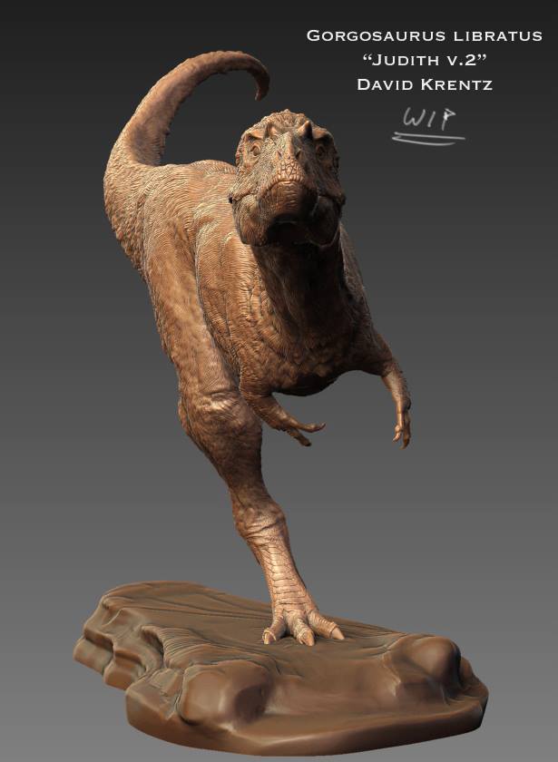 Acclaimed paleoartist David Krentz presents this magnificent sculpture of "Judith", a Gorgosaurus libratus. This piece depicts a full grown individual leaning into a turn while racing across a mudflat. Like all resin kits, this model ships dissembled and unpainted. Presented by renowned paleoartist David Krentz, whose work can be seen in Disney's Dinosaur, Sideshow's Dinosauria line, and the Discovery series "Dinosaur Revolution."