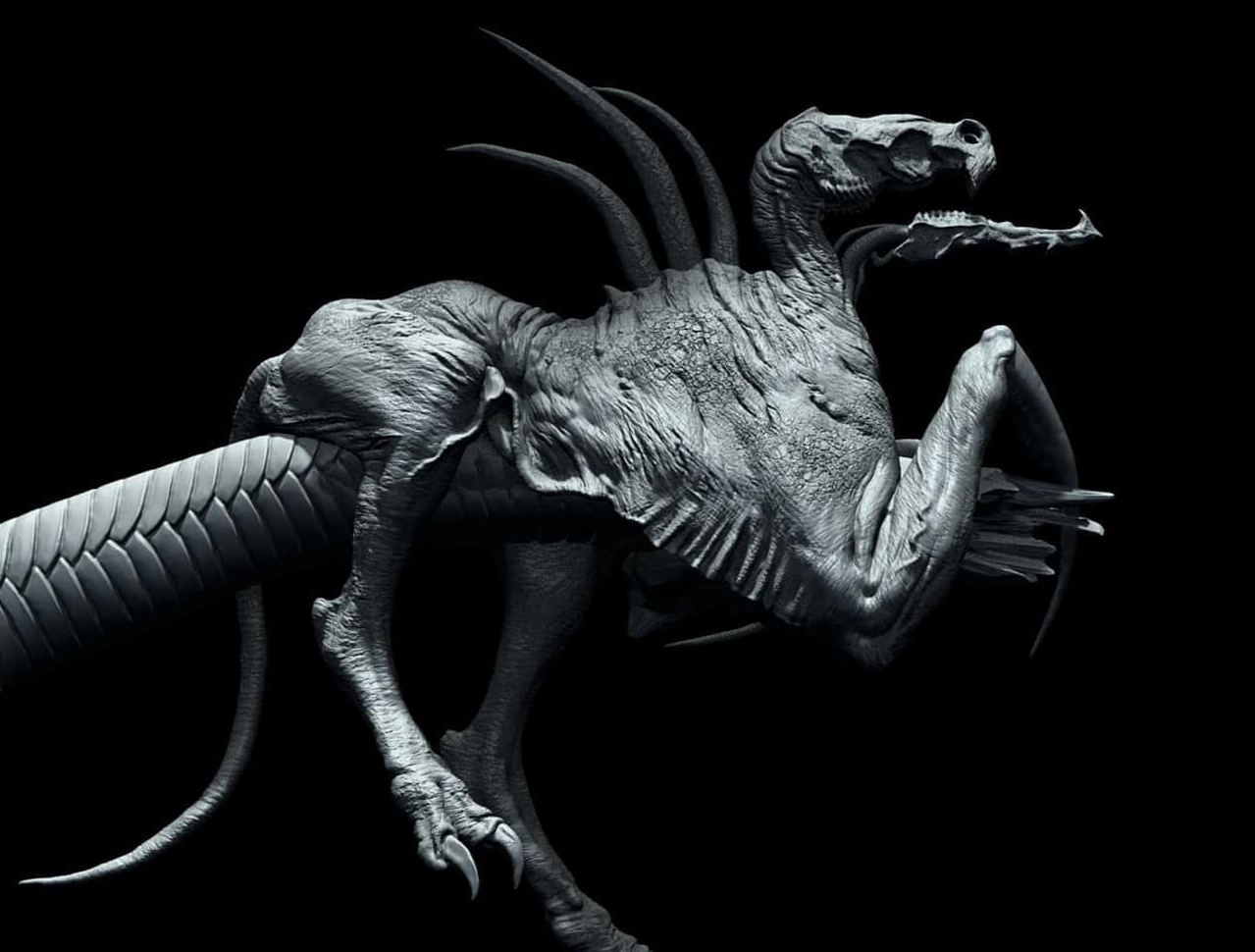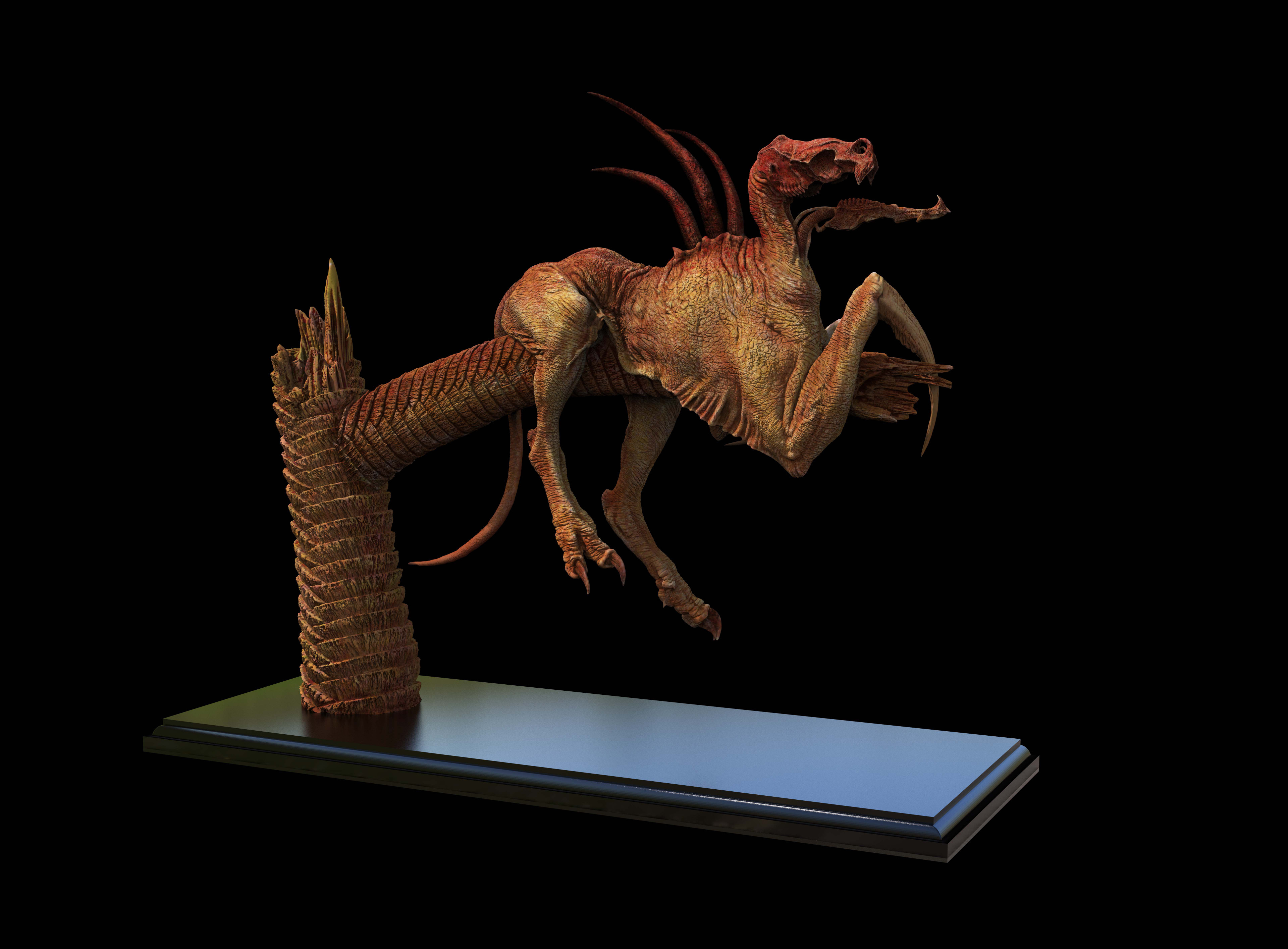 Collaborating with Author and designer Wayne Barlowe to produce a statue based on Daggerwrist from his iconic 1990's illustrated book EXPEDITION. Daggerwrist image recreated with digital model set against the original painting's sky. Sculpted in Zbrush, rendered in Keyshot.