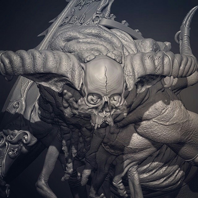 “In this variant, Oglavaeil’s voluminous capes are now tattered streamers. This was intended to further reflect the near-constant strife the Enforcer finds himself in whilst serving the needs of the Dreadsbane Order,” said Gilliland. “I think my favorite detail, though, is that we’ve changed the entire portrait – horns and all – to match designer/sculptor Amilcar Fong’s incredible design for the Oglavaeil bust’s portrait. While I love both takes, the new one reflects a bit more pathos than the last. His helmet with only a single small eye hole to peer through was the best touch. Repentant of his need to destroy, this thin casing of metal serves as a psychological barrier to his growing guilt over what he must do to.”