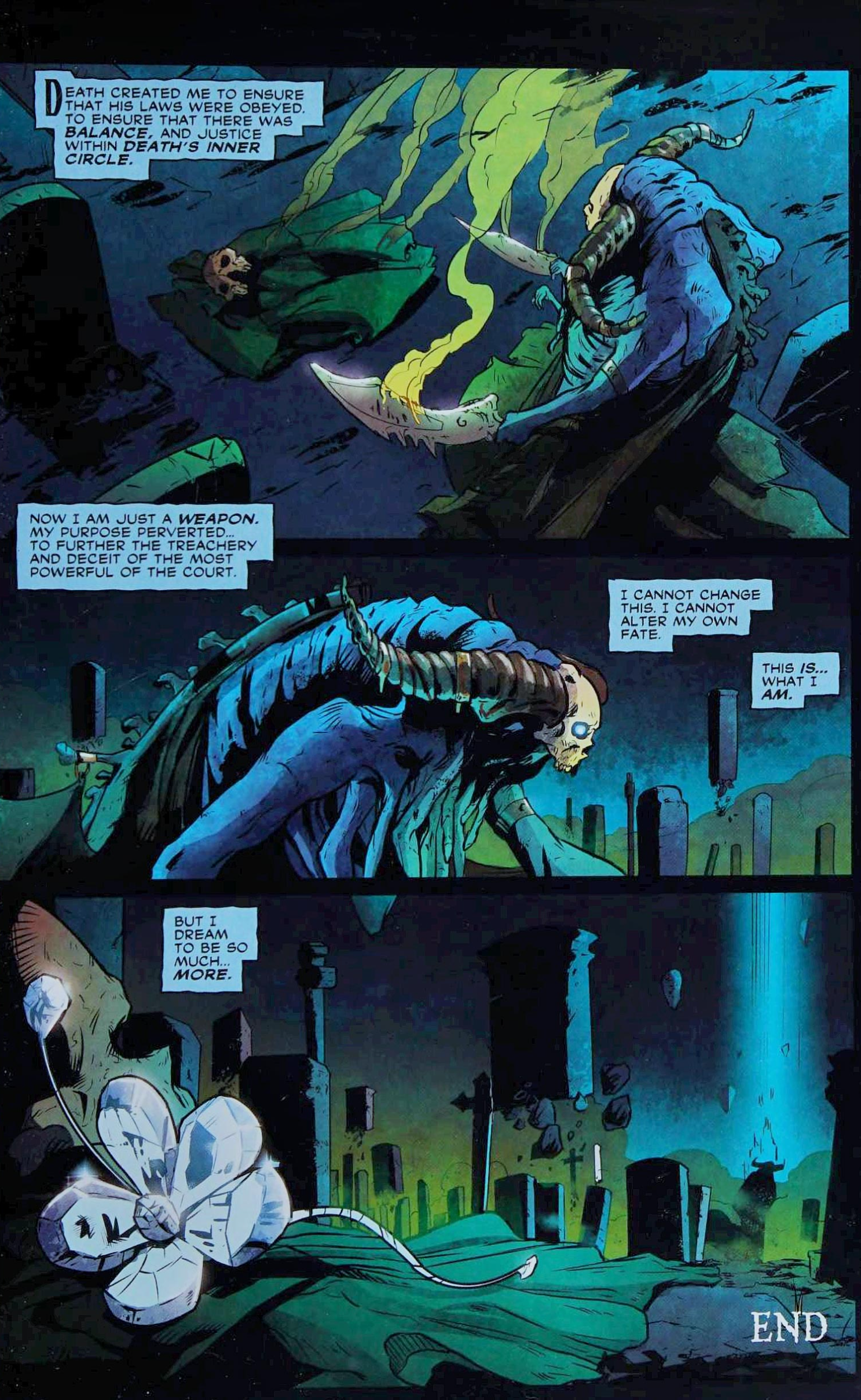 What do you imagine such a being to be like? What is the nature and temperament of lie who brings death to the dead, and ending to the end? Should you have the misfortune to gaze into his eyes, you may be surprised at what you find there.