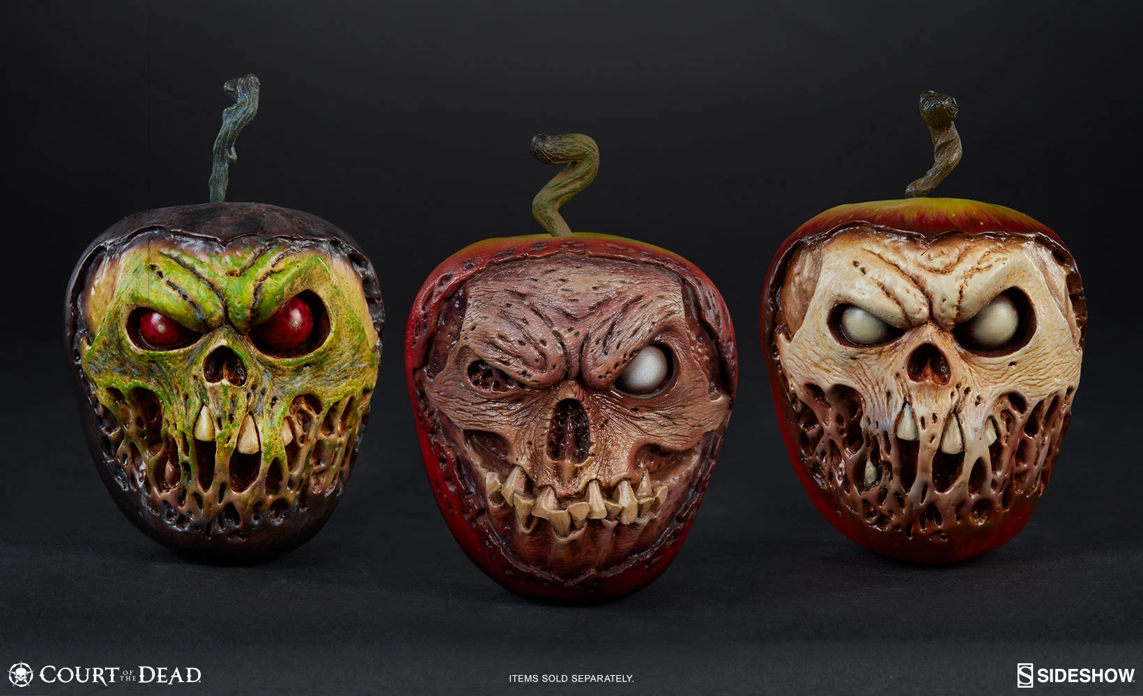 Rosy, red-cheeked apples have long been used in Sideshow photography to provide a sense of scale next to our highly-detailed collectibles. But not all apples can be as hardcore as the apple of our undead eye. Painted in charmingly gruesome detail, the Skull Apple looks frighteningly good next to any horror collectible. Cast in resin, it will never wither away.