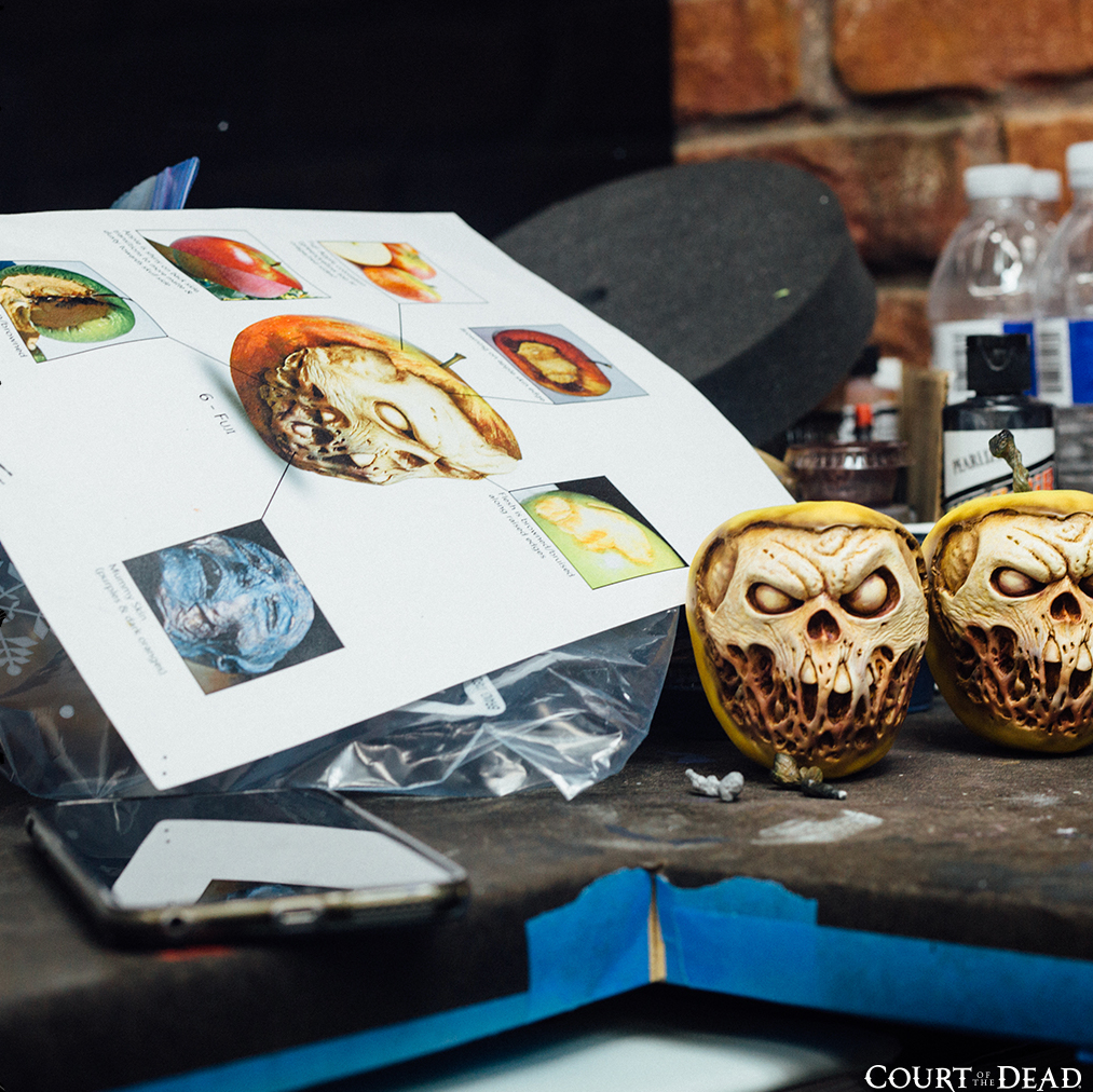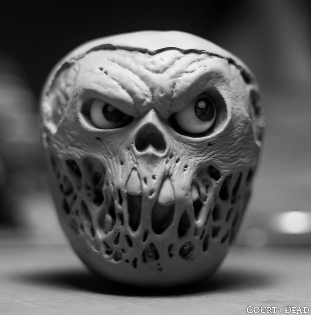 The Skull Apple stands an average 3.75” tall, but that is the only standard thing about it. From the bottom of its bruised chin to the tip of its gnarled stem, the Court of the Dead Skull Apple Replica is rotten to the core and we wouldn’t have it any other way.