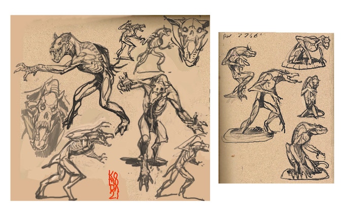 The legendary artist Paul Komoda has really knocked it out of the park designing the ghoul that Pickman paints as his primary muse. Using the two known sketches drawn by Lovecraft himself as a guide, Paul followed his description in the story to the letter to create a nightmare made flesh.