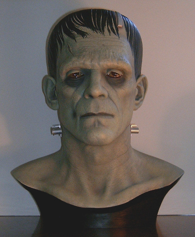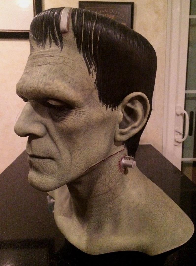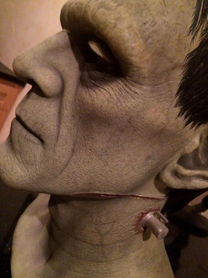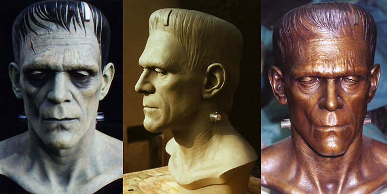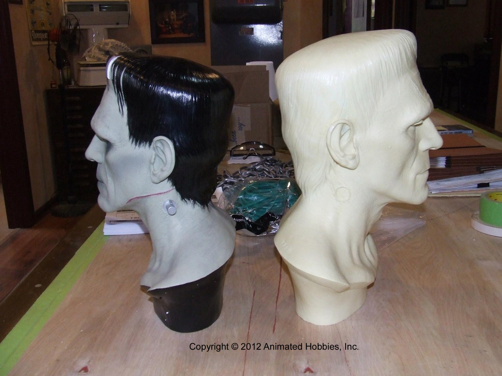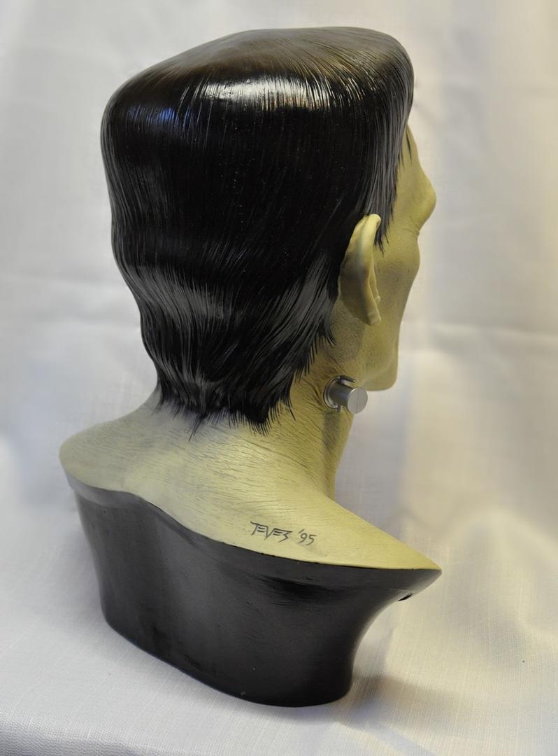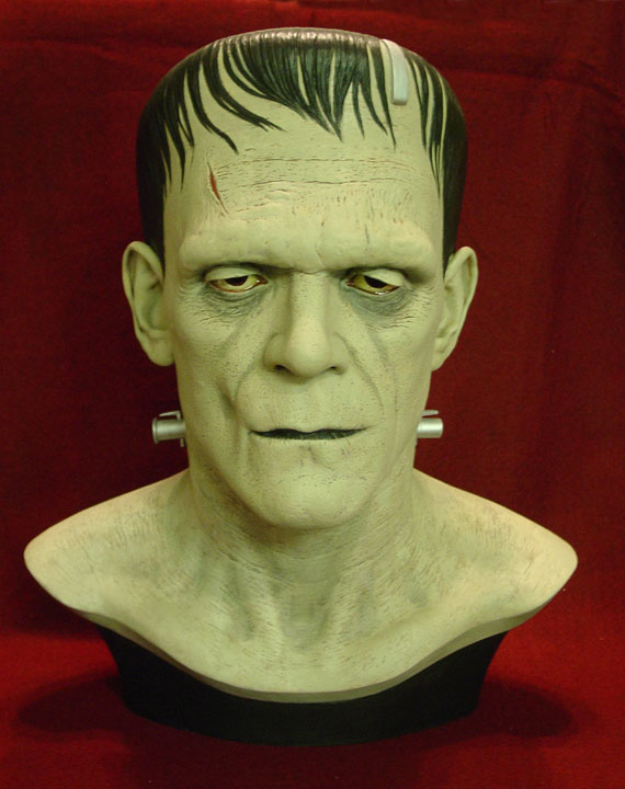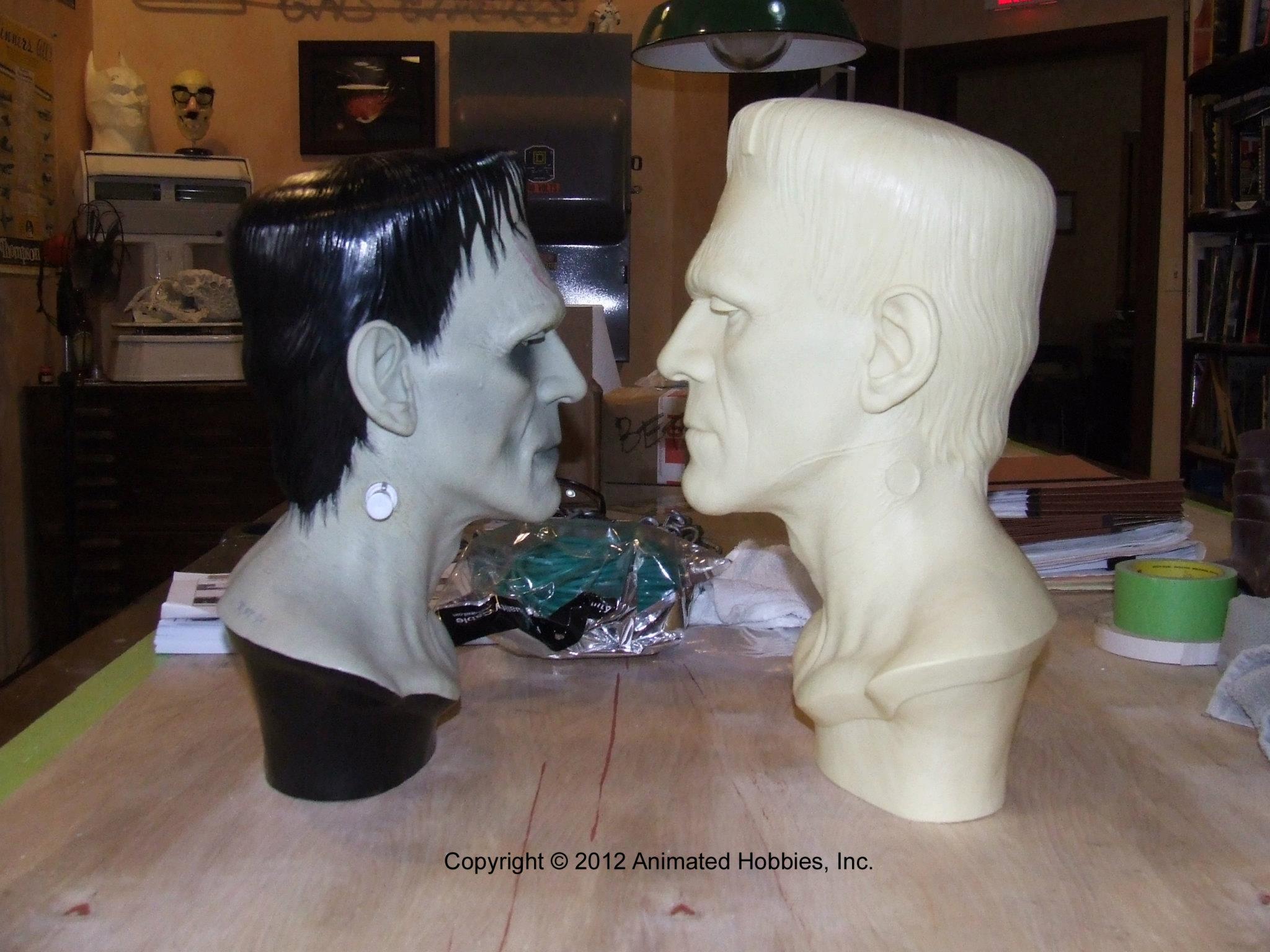 In addition to regular 100% life-sized unpainted resin Frankenstein model, CineArt made finished versions (with and without real hair and glass eyes), a full-body life-sized figure with optional programmable eyes that would follow any motion in a room, and a real bronze bust.