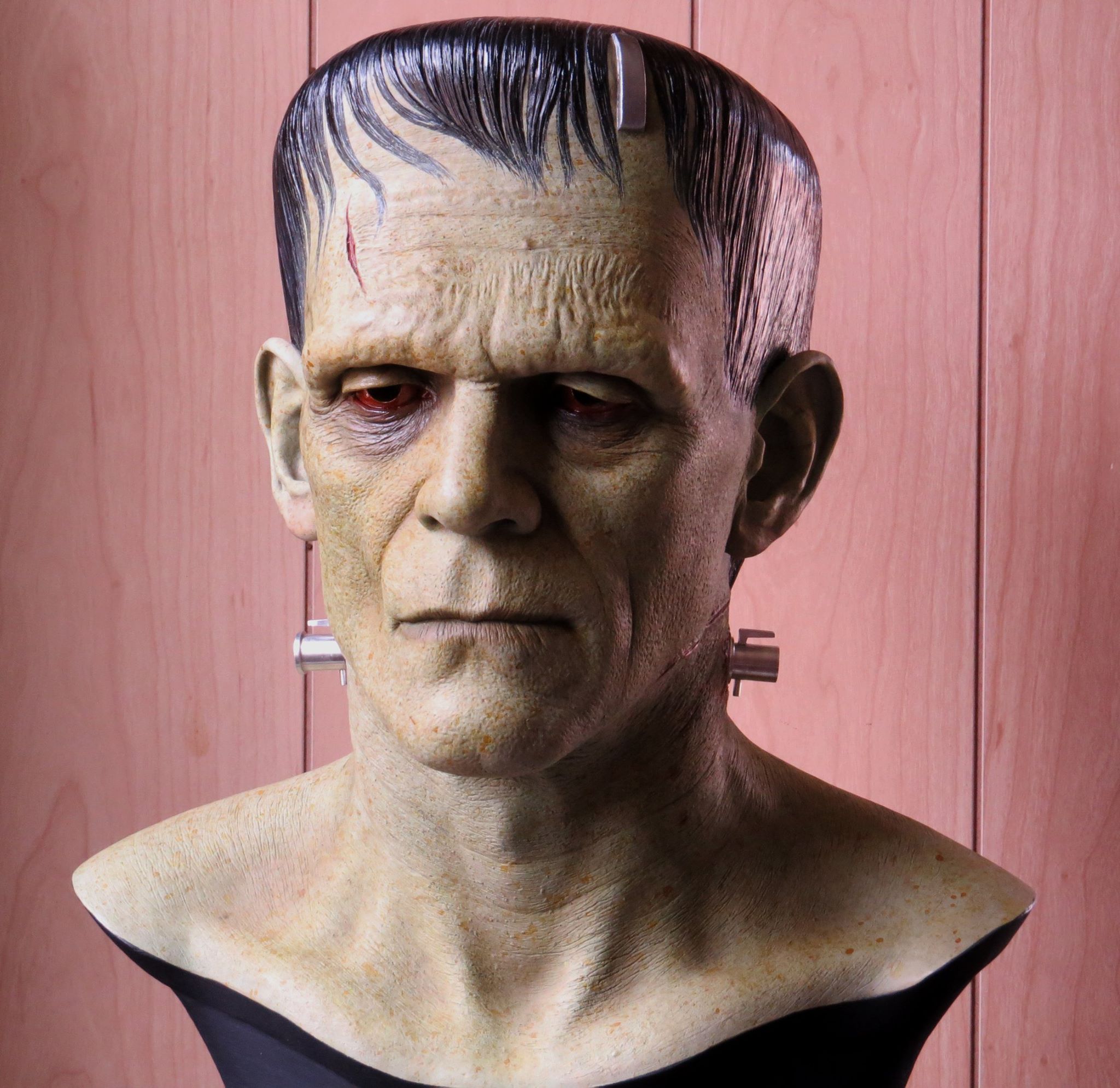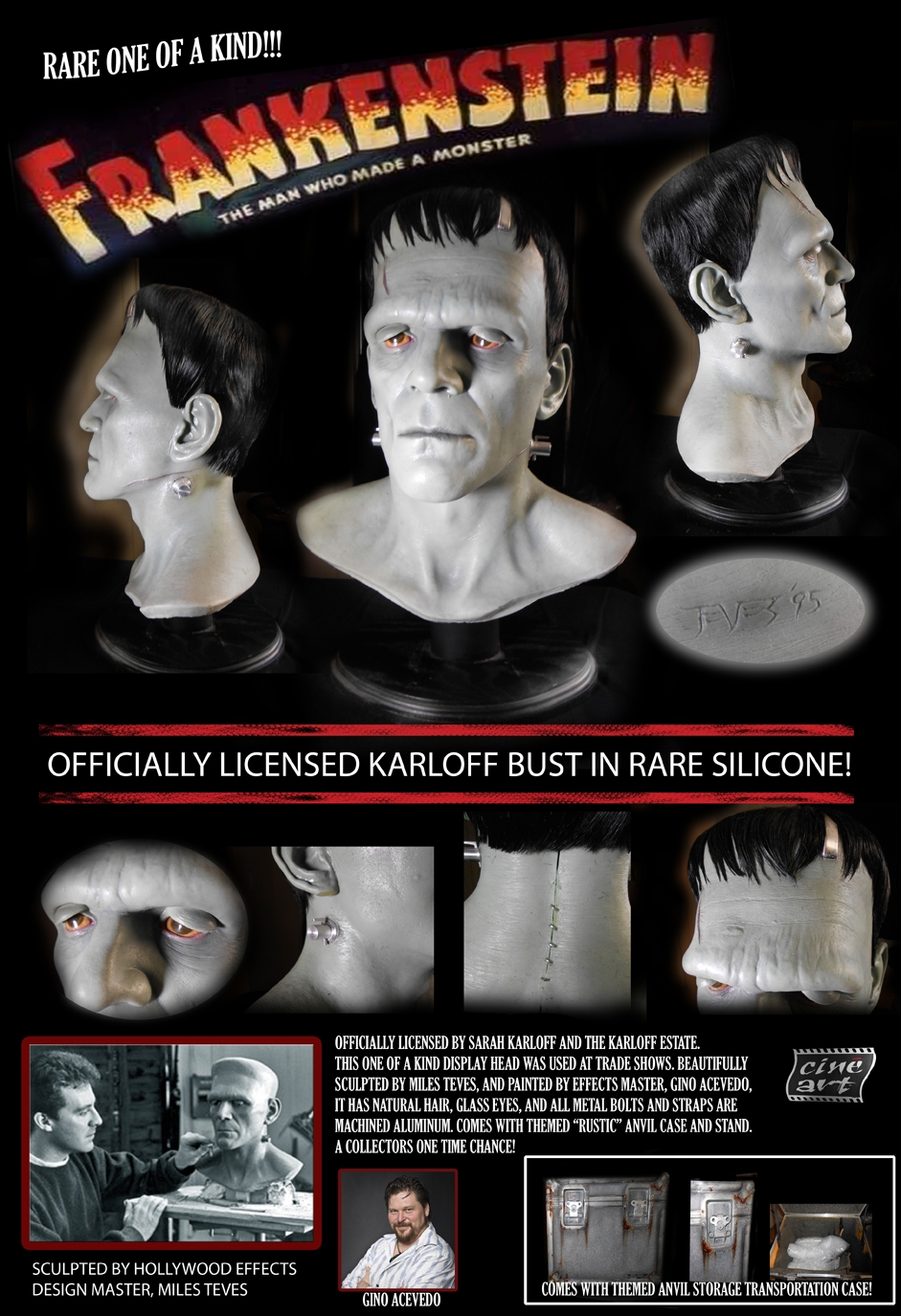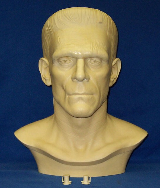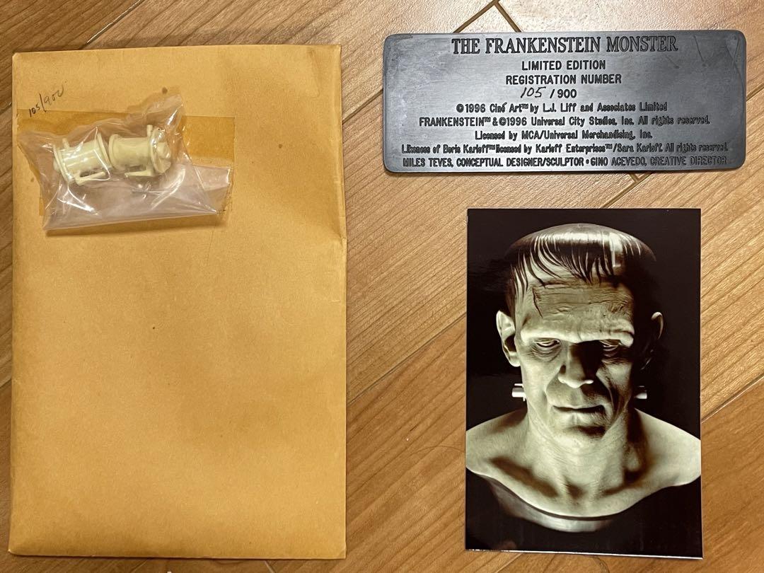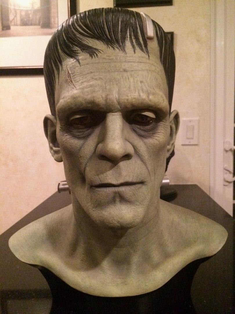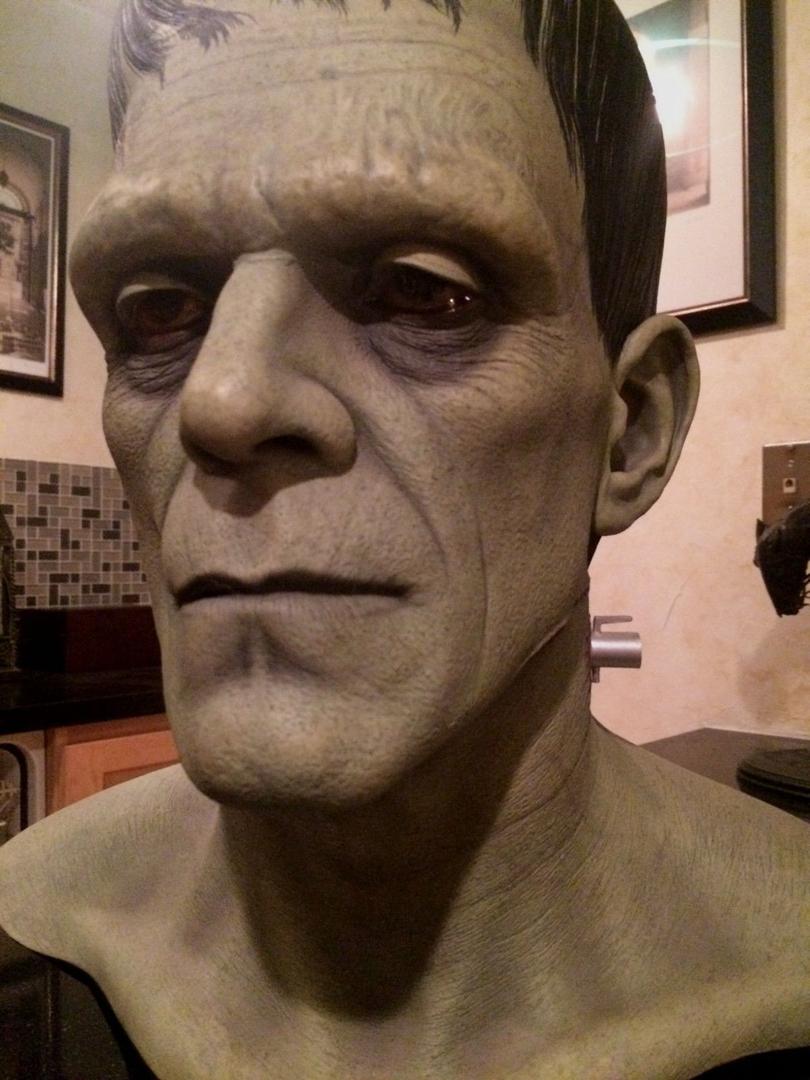 In addition to regular 100% life-sized unpainted resin Frankenstein model, CineArt made finished versions (with and without real hair and glass eyes), a full-body life-sized figure with optional programmable eyes that would follow any motion in a room, and a real bronze bust.