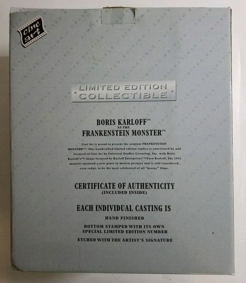In my opinion, I think what killed CineArt was the fact that they released the 90% busts too soon. Many people who bought the 500 piece limited edition unpainted 100% Frankenstein bust for $500.00 were unhappy about seeing another 12,500 finished 90% busts issued for only $100.00.