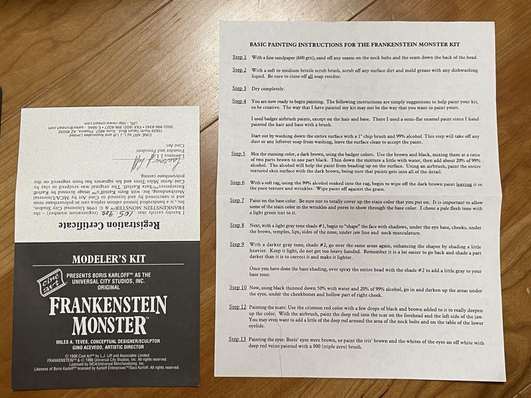The 100% life-sized unbuilt resin Frankenstein models were a limited edition of 500 and cost around $500.00. The 90% life-sized painted vinyl Frankenstein busts sold by Spencer's Gifts were a "limited edition" of 12,500 and sold for around $100.00.