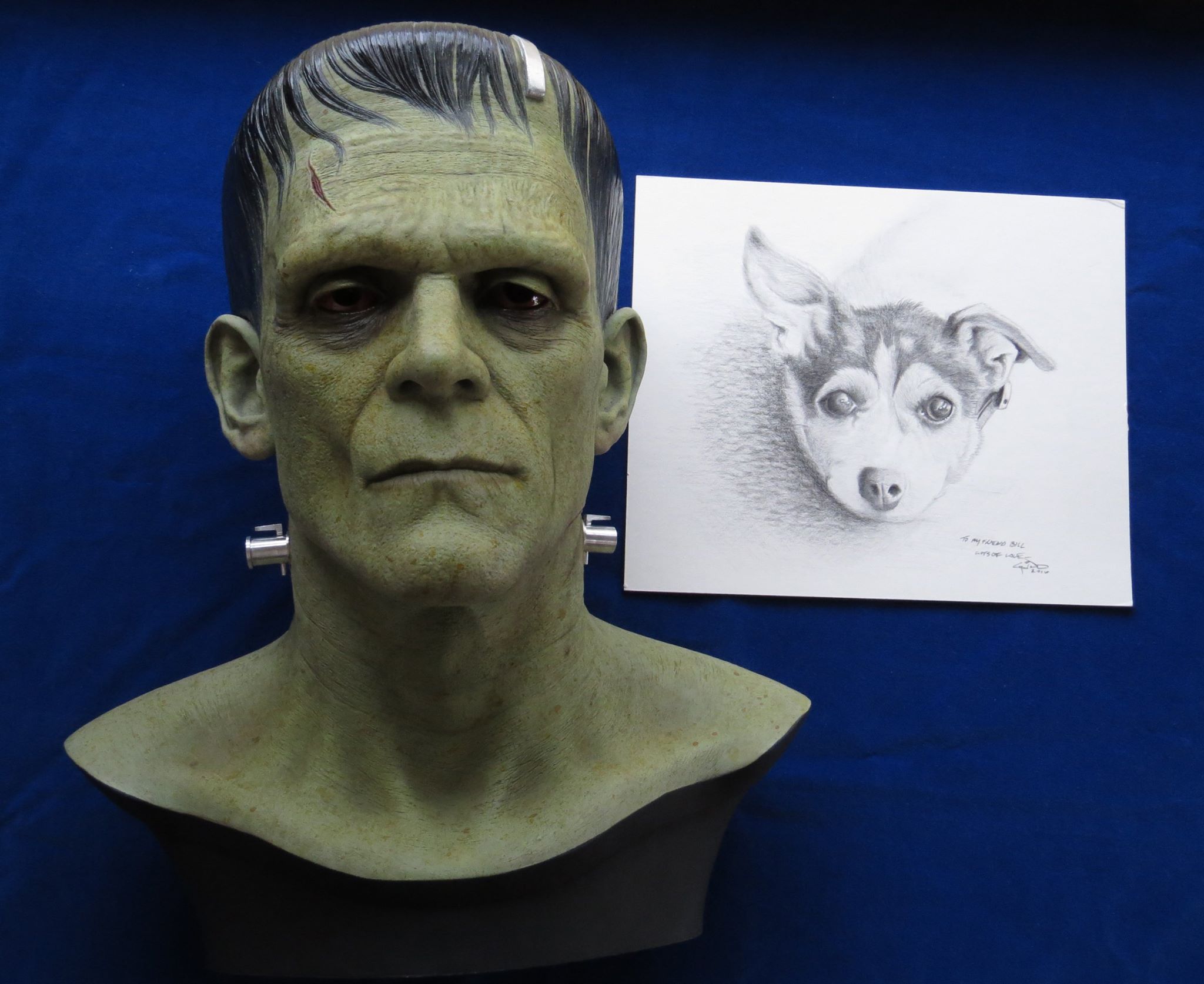 Boris Karloff Frankenstein head by Miles Teves, a Hollywood artist and conceptual designer who works on television productions, films, and computer games. He has worked on films from King Kong (2005,) Total Recall (1990,) Interview with the Vampire, Iron Man, The Passion of the Christ and so many more! Up for auction April 13th 2013! We will be holding a horror-inspired charity auction at the Monsterpalooza convention in Burbank. Follow us @BlacksparrowAuc on Twitter or Facebook for details.