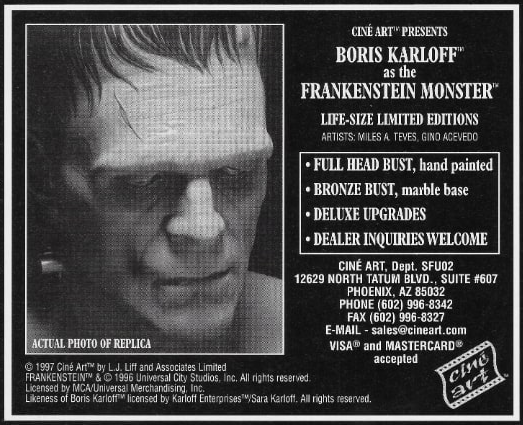 If someone can find their copy, please correct anything I've said. Some of this information may be inside Amazing Figure Modeler Magazine No. 23 with the CineArt bust on the cover.