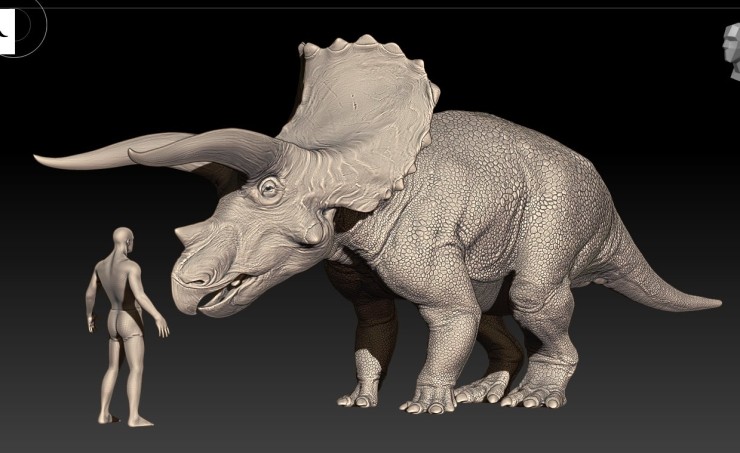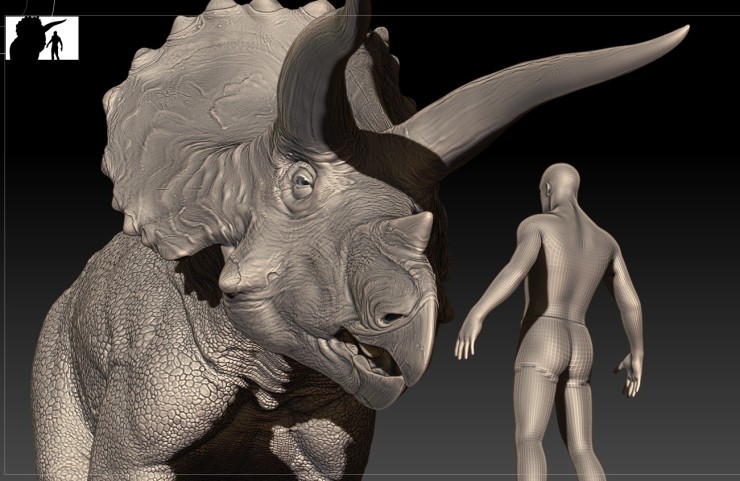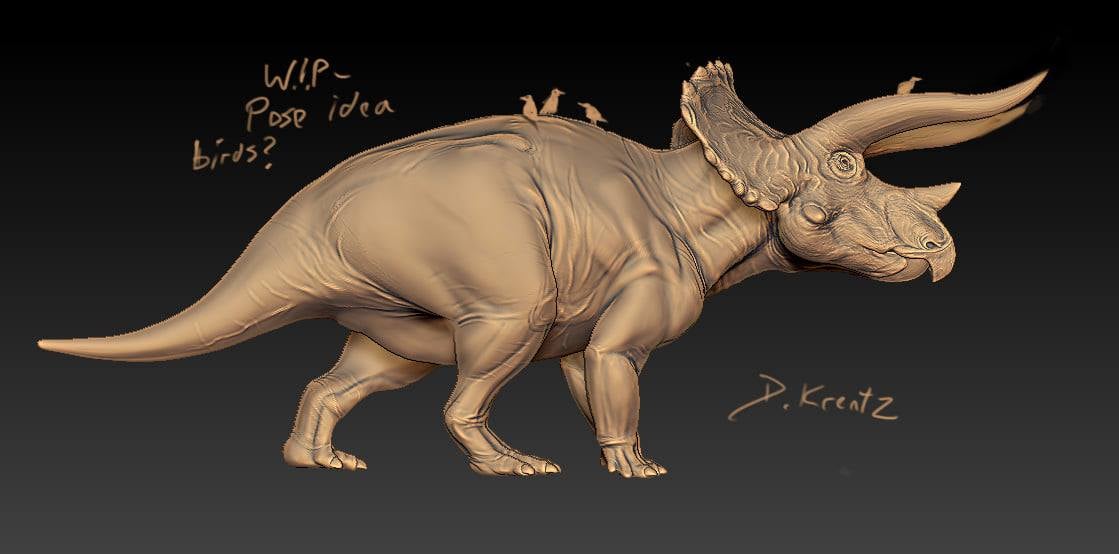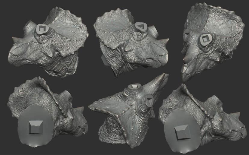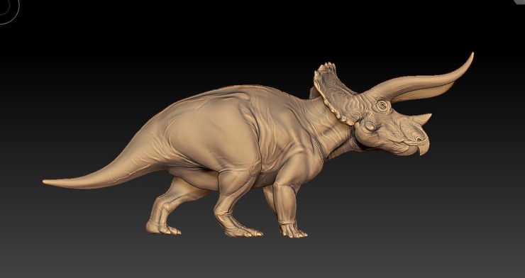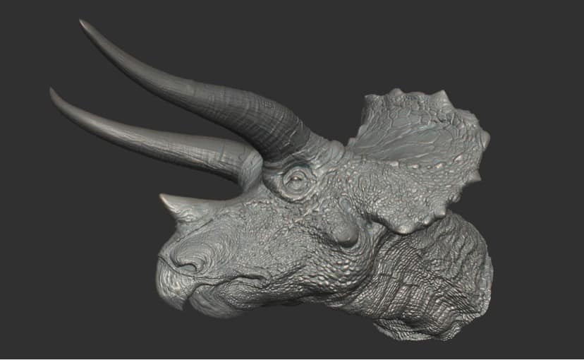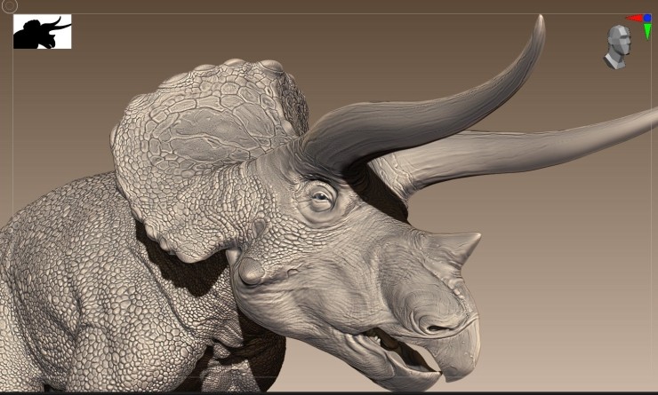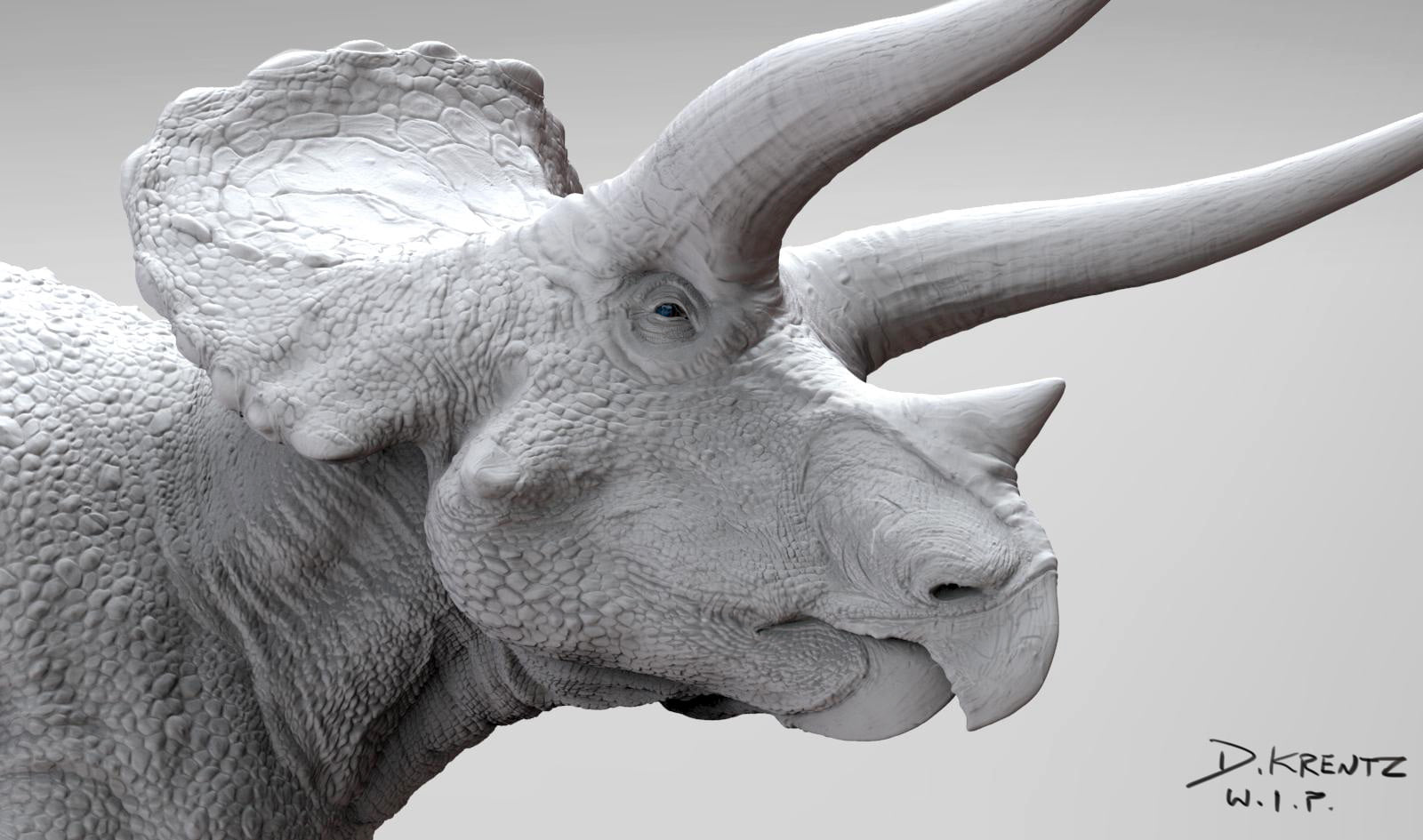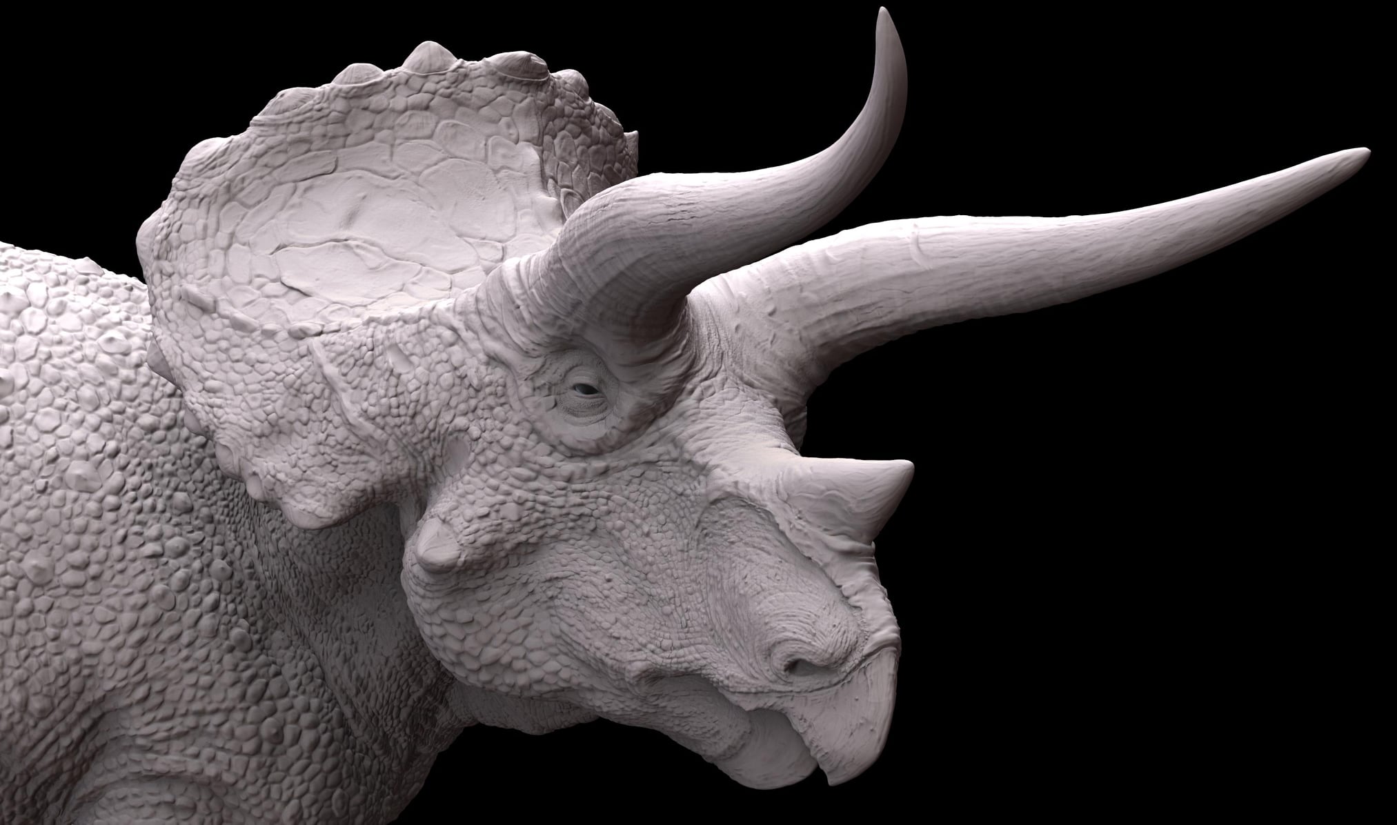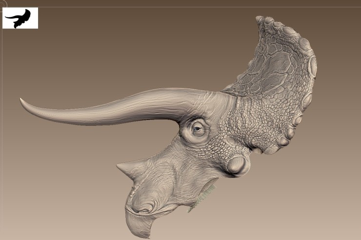 I used a scan of Hatcher's head to sculpt over, but I made some changes. There are so many Triceratops to choose from!