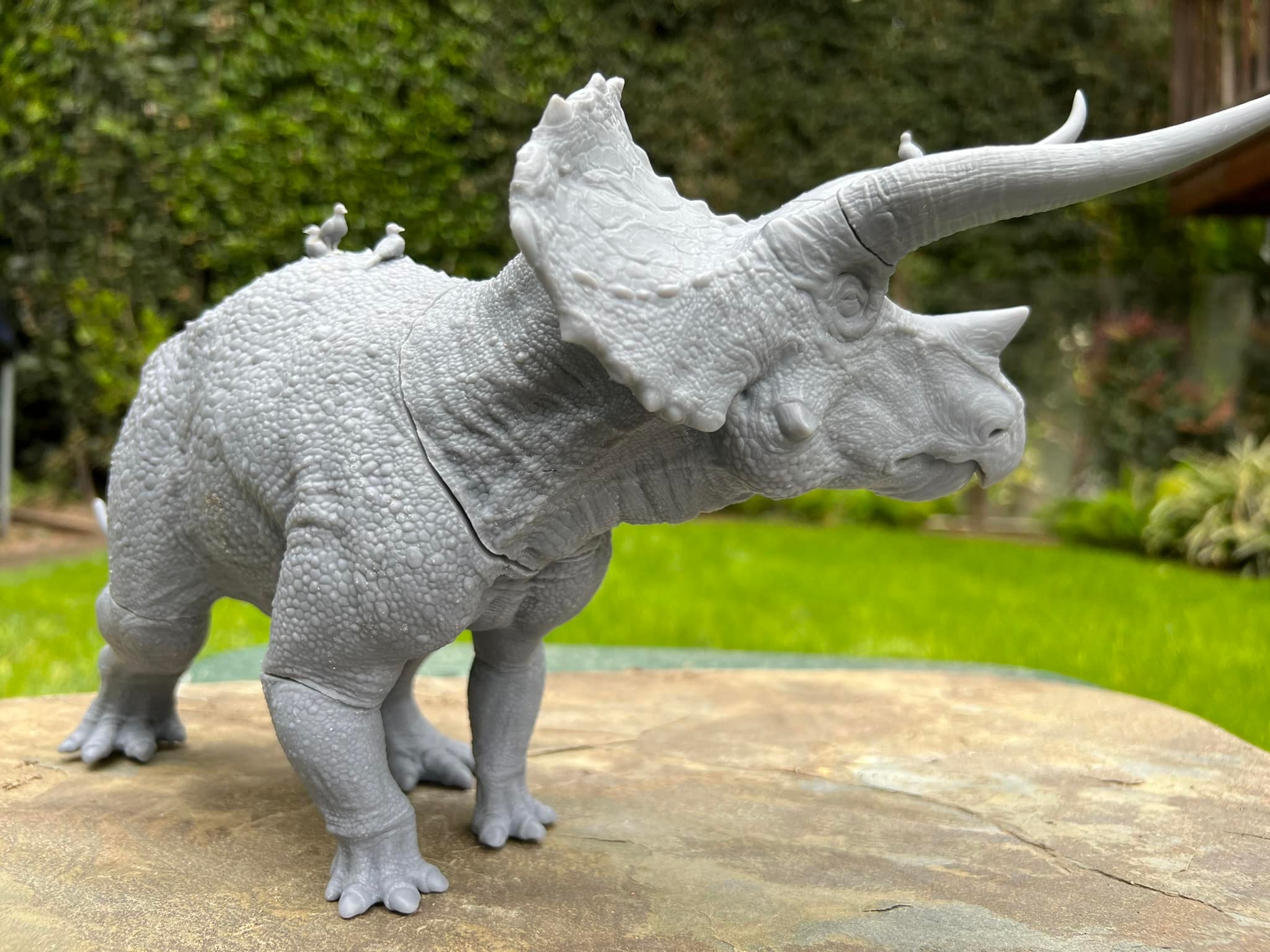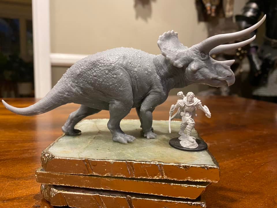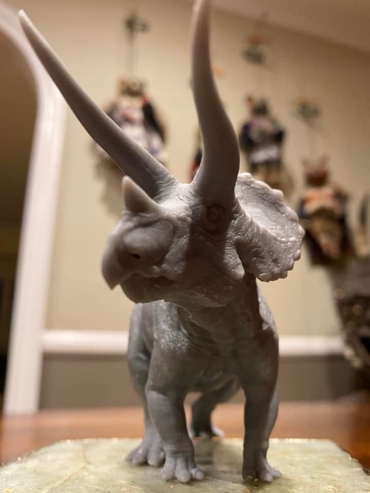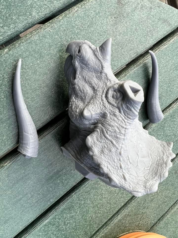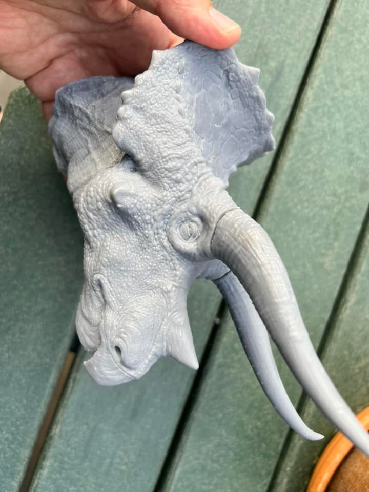 Thought I’d do a test print of my Triceratops so I can see it in the round and see if anything bugs me. I’m already picking up some stuff that I don’t like and seeing details I need to amplify. The scale here is 1/54 (28mm) the finished one will be 1/18.