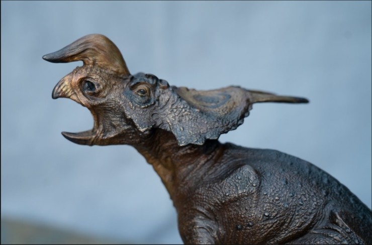 This is a quick pose. It shows a different configuration of the horns. More forward facing and slightly less curvature. Looks like the frill is longer too.
