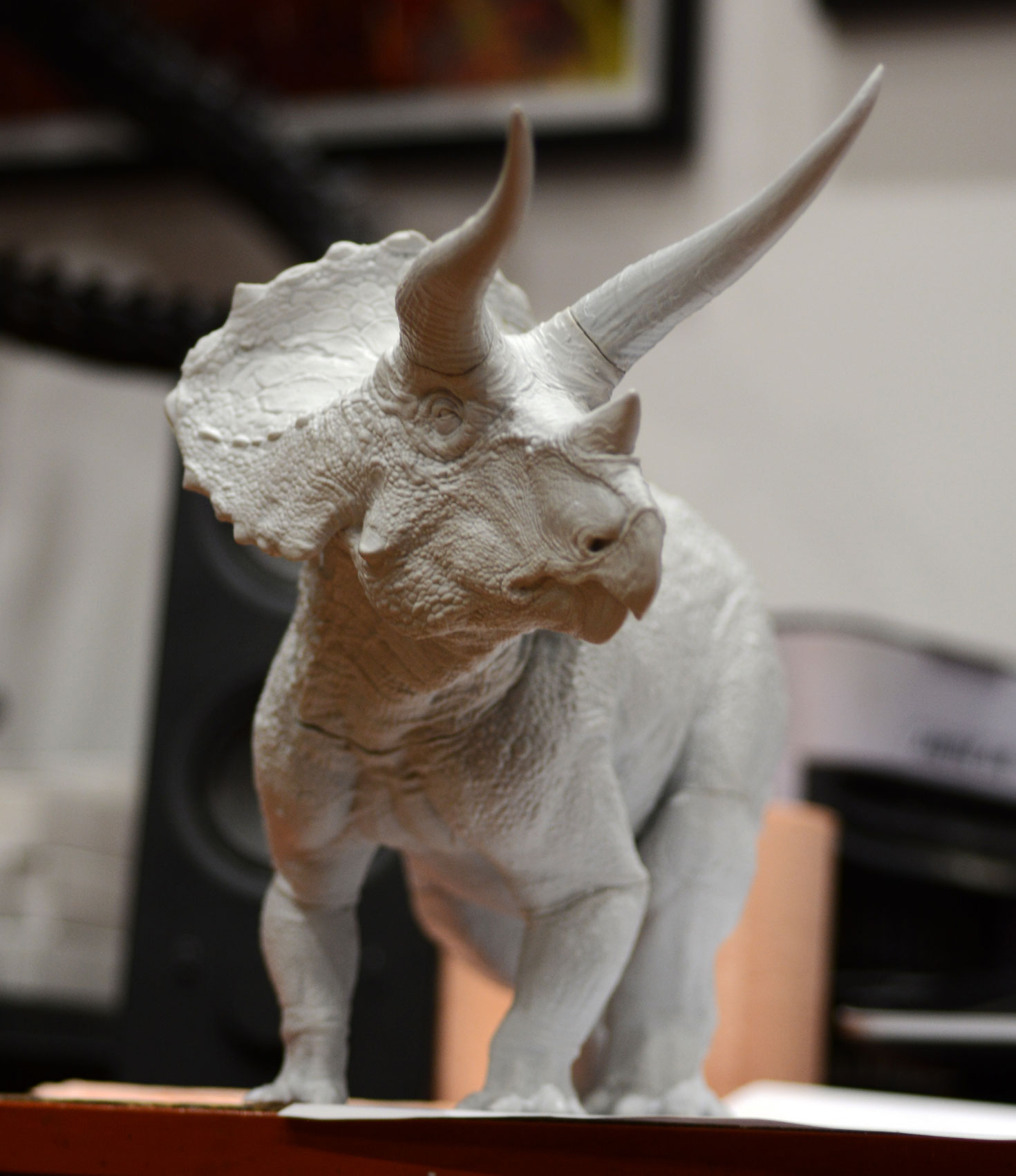 : Hatcher의 머리를 스캔해서 조형했지만, 몇가지 변경이 있었다. 트리케라톱스 종은 아주 다양하다. 나는 때때로 18과 20 모두에게 어우러질 수 있도록 1/19 스케일로 출력한다. 1997년도부터 1/18 스케일 작업을 시작해왔기에 그것은 나의 주력 스케일 중 하나이다.