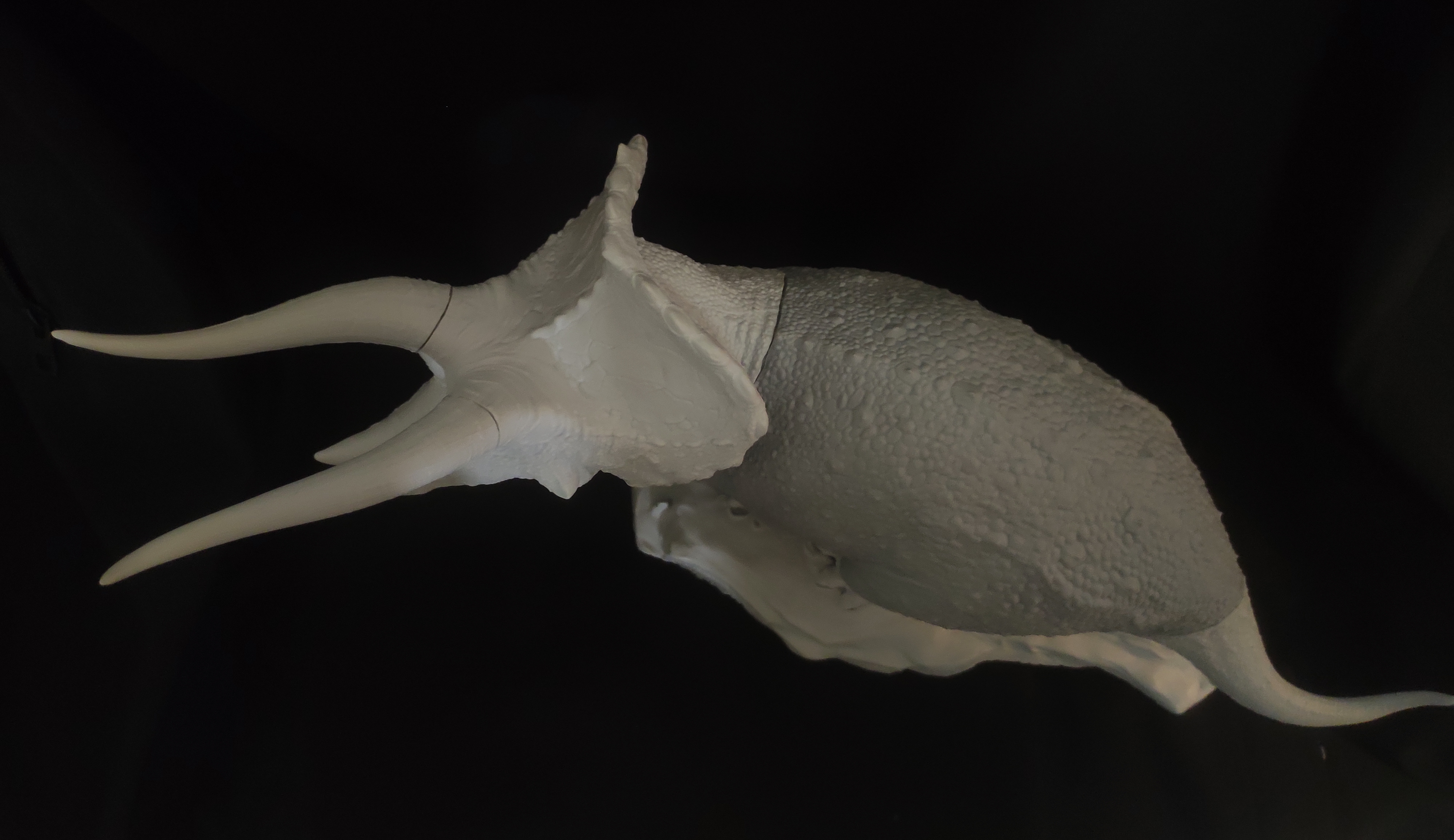 : 어색한 부분을 체크하기 위해서 트리케라톱스 테스트 프린트를 진행했다. 벌써 몇몇 거슬리는 요소들을 발견했고, 또한 디테일 묘사에서 정교함을 끌어올려야겠다. 이 출력물은 1/54스케일이며 최종적으로는 1/18이 될것이다.