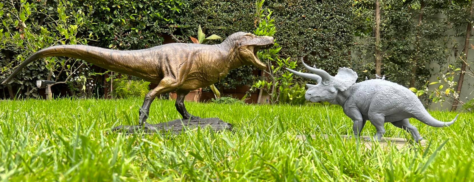 The Triceratops will stand a lot taller when its on its base, so the two will be a little more face to face.