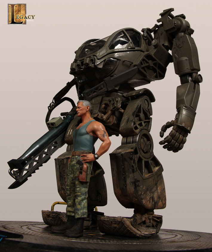 For the upcoming epic film from James Cameron - Avatar - Legacy Effects created a full sized AMP Suit, which stood approximately 14 feet high. Taking digital scans of the full sized suit, the artisans at Legacy were able to painstakingly scale down every detail exactly for the maquette, which Sideshow has turned into a collectible! Have a look at the images to see some of the up-close detail and the size of the maquette next to human hands (it stands over 2 feet high!)